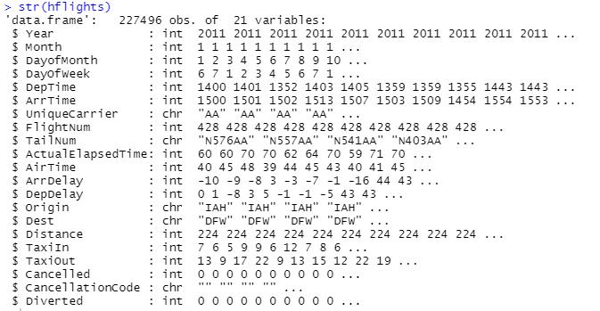 str(hflights) # hflights의 구조 출력