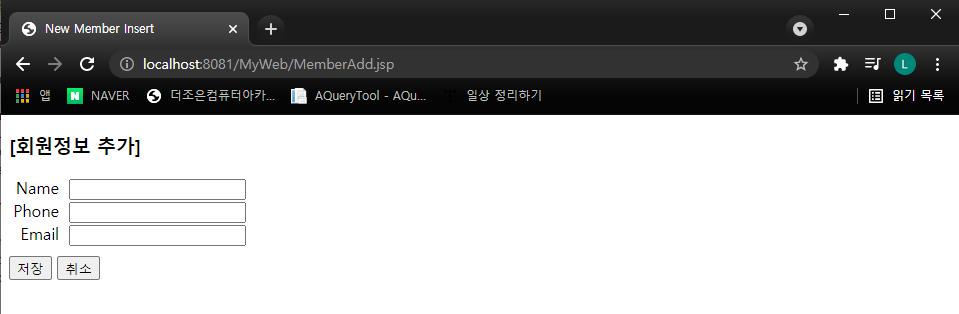 | [웹] JSP 예제(MySQL과 연동, 웹 브라우저 출력)(2) (0) | 2021.06.23 |