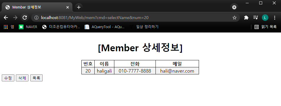 5. (추가) AJAX에서 success 함수를 통해 alert를 출력하고 성공했을 경우 href를 이용해 멤버 리스트를 출력할 URL로 이동하여 리스트를 출력한다.